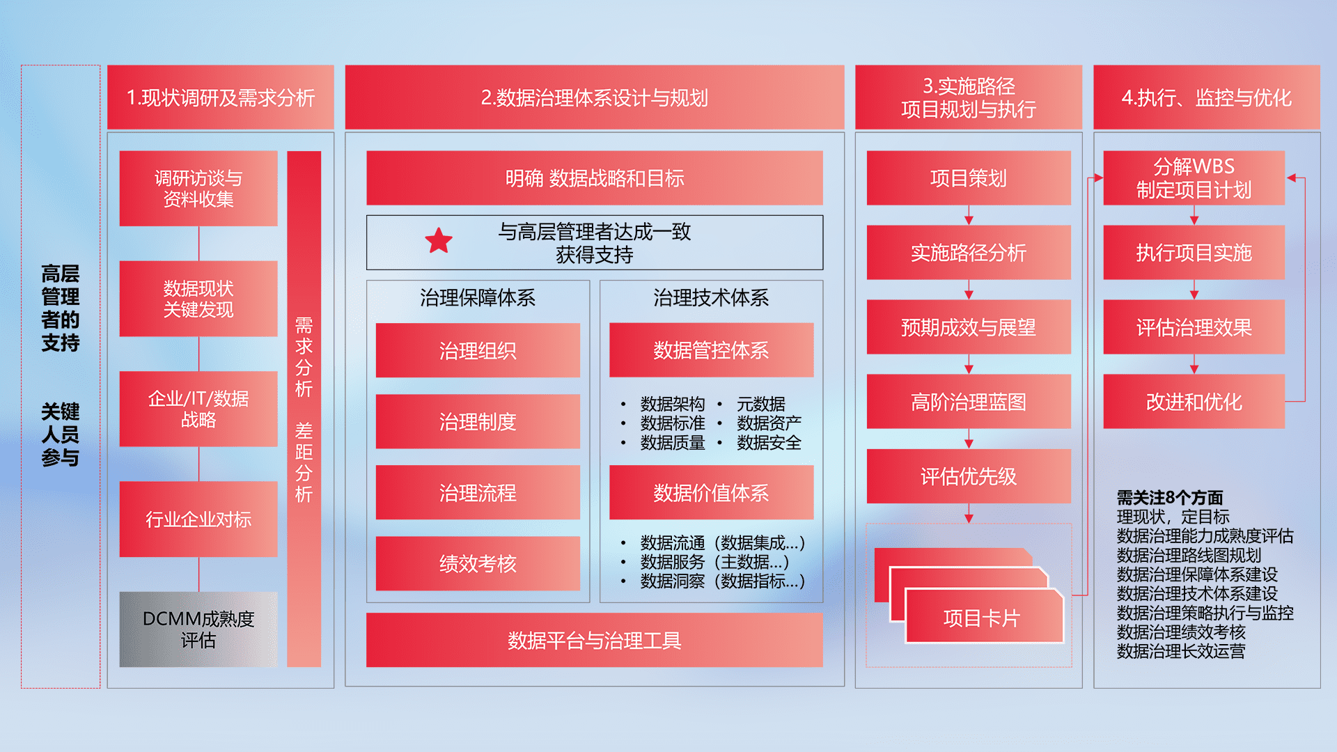 制定并执行统一的数据标准,,,规范数据定义和格式,,,消除冗余和不一致性,,,,实现跨部门和跨系统的数据一致性,,,,为企业提供标准化的数据基础。。。。